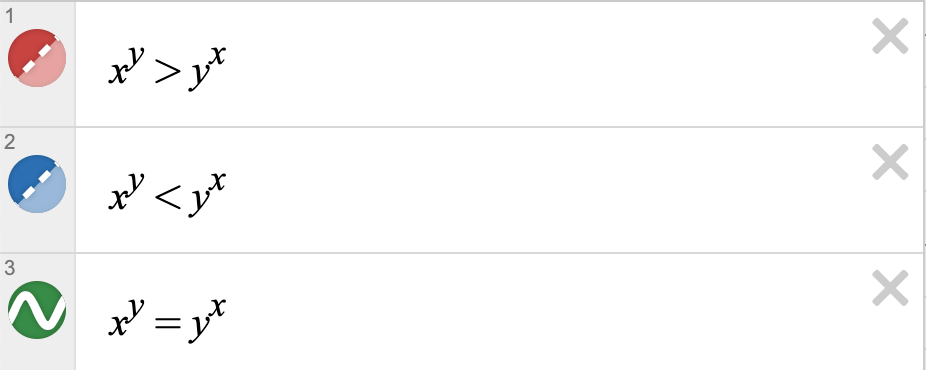 Let’s make this an implicit equation to better represent the situation. Let’s call it y^x = x^y.